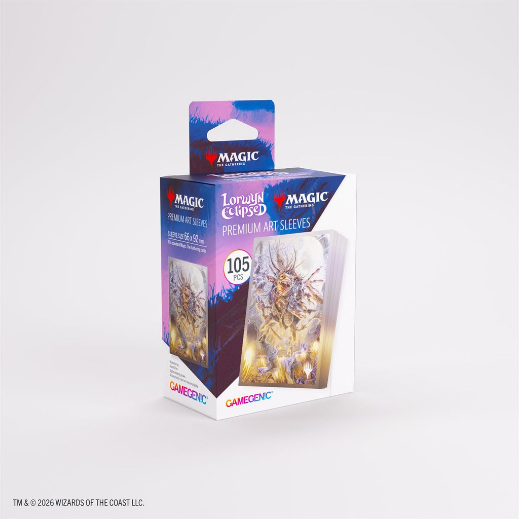 Enhance your game and protect your cards in style. These premium-quality, full-color printed Art Sleeves with textured finish are a must-have for every fan of the game. The matte back and clear front provide an exceptional tactile feel and an incredibly smooth shuffle experience. Each pack includes 105 sleeves and comes in fully plastic-free full-art packaging with a retractable hanger.